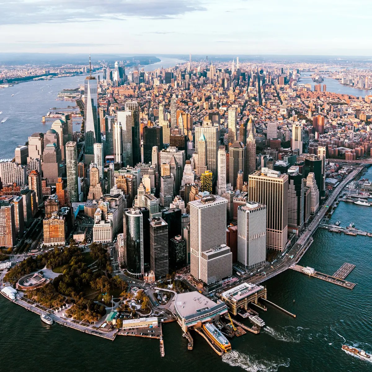 Die Stadt wurde 1624 gegründet und hat seither eine beeindruckende Entwicklung durchlaufen. Manhattan, mit seiner berühmten Skyline, zeigt eine beeindruckende Mischung aus historischen Gebäuden wie dem Flatiron Building und modernen Wolkenkratzern, einschließlich des One World Trade Centers.